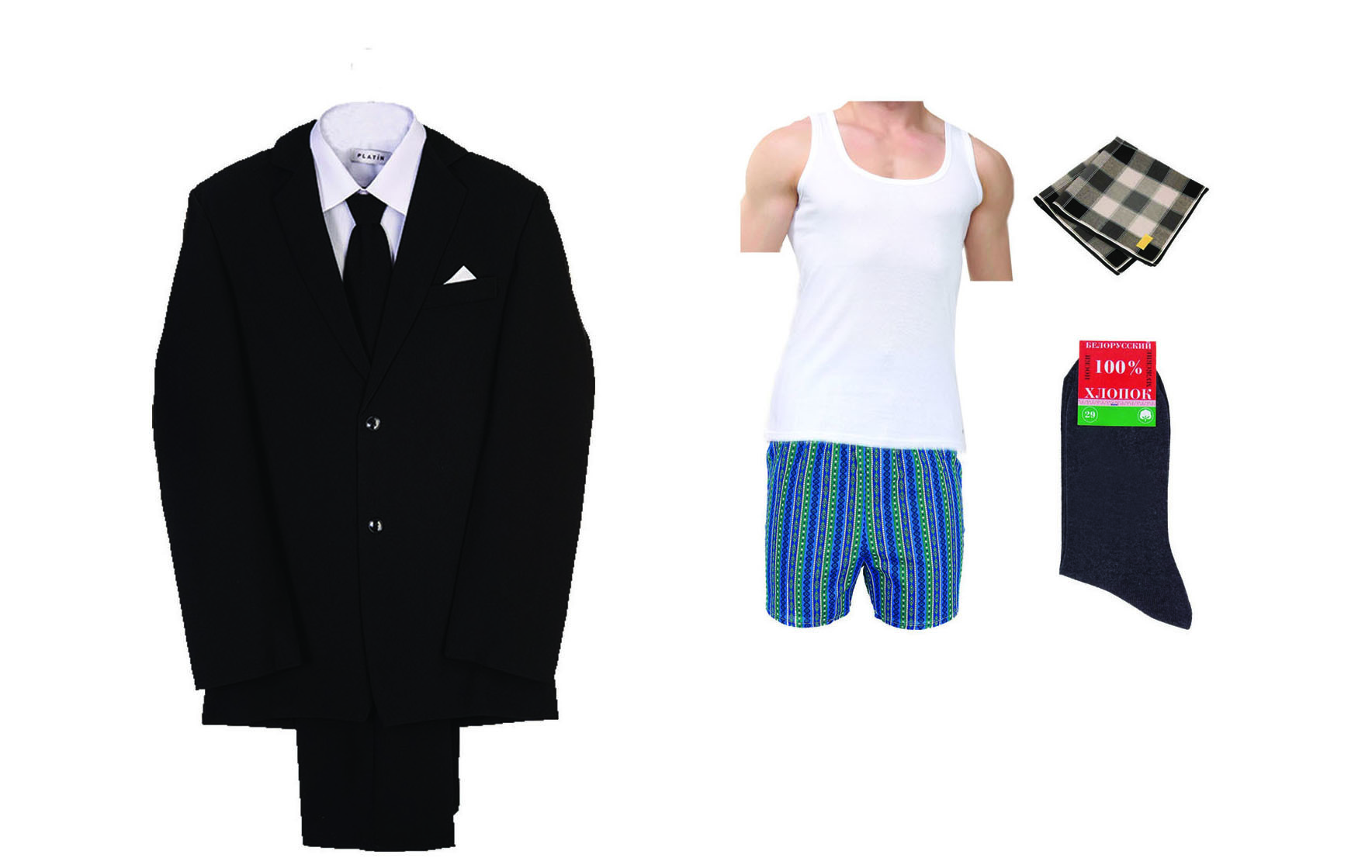 Набор одежды для похорон мужчины — это тщательно подобранный комплект, включающий все необходимое для достойного прощания. В состав набора входят: классический черный костюм, сорочка, носки, трусы, майка, носовые платки и тапочки. Все элементы соответствуют ритуальным традициям и требованиям. Этот комплект обеспечивает достойный внешний вид усопшего, подчёркивая уважение и внимание к важным деталям в момент прощания.