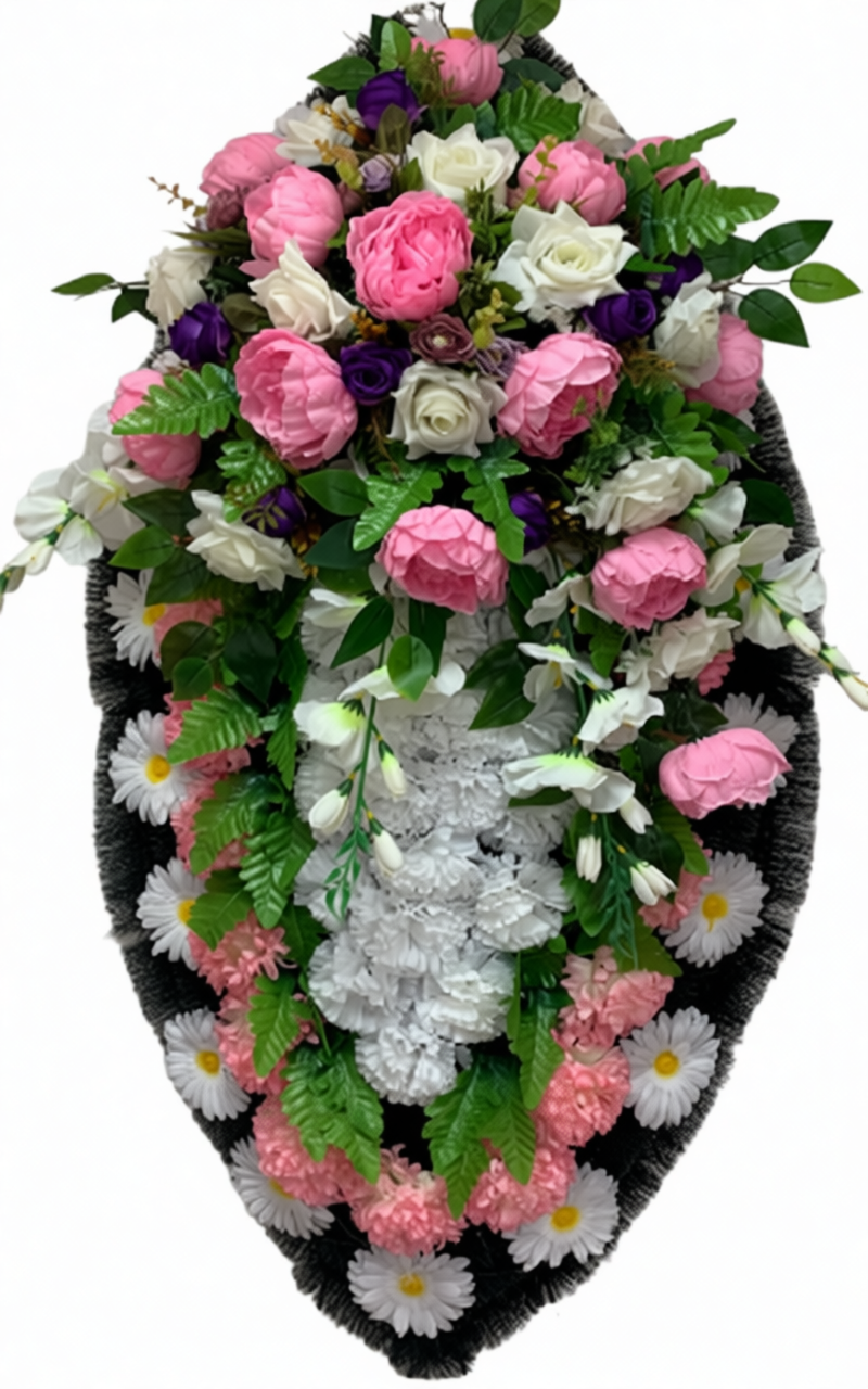 Этот венок больше подойдёт для церемоний прощания с женщинами, передавая нежные и глубокие чувства уважения и памяти.